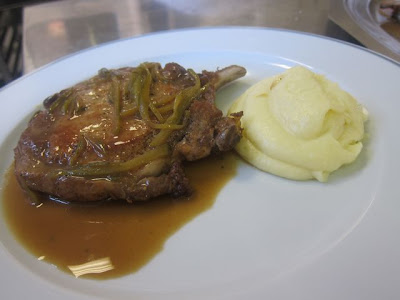 3. Cotes de porc charcutière, pomme purée (Pork chop with Cornichon and mustard sauce, mashed potatoes)
